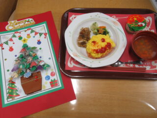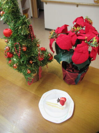 お昼にはクリスマスピラフ、3時のおやつにはクリスマスケーキが出ました。