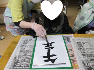 2日には書初めを行い、皆さん真剣に筆を走らせておられました。